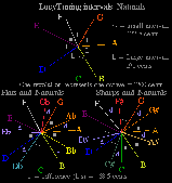 CLOCKFACE DIAGRAMS LucyTuned Notes 12 tone Equal Temperament (12tET) LucyTuned Notes and Colourson clockface diagram